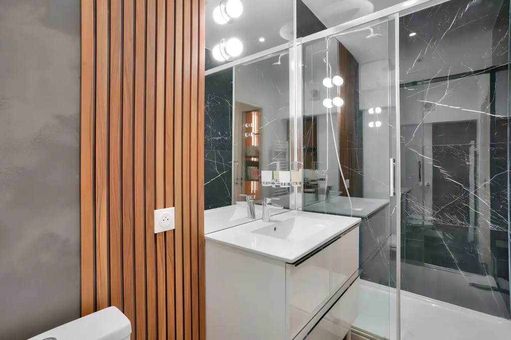 Located just a short walk from the Palais-Royal and the Louvre Museum, this architect-designed apartment offers the perfect blend of elegance and convenience. You’ll be close to Paris’ best shopping destinations as well. The spacious open-plan living area is ideal for quality time with family and friends, and accommodates guests five and six on a sofa bed. The marble-and-wood kitchen is fully equipped, and each cozy bedroom features its own en-suite for added comfort.